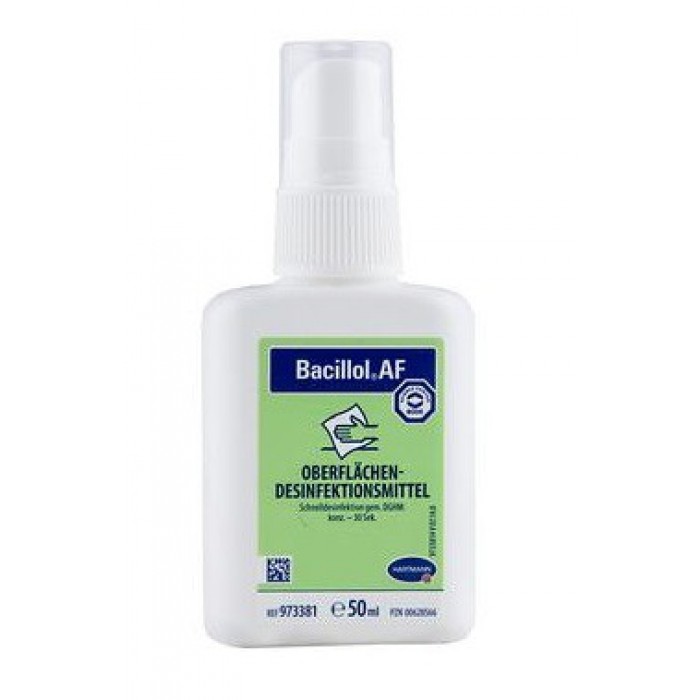 Особливості застосування Використовується без розведення. Ефективний при повністю змоченої поверхні. Серветку для витирання просочують достатньою кількістю Бациллола® АФ і витирають поверхні, або проводять дезінфекцію розпиленням/протиранням. Мікробіологія Бактерициди (включаючи MRSA/EHEC, збудників туберкульозу, лістеріозу, бруцельозу, лептоспірозу та сальмонельозу), фунгициден (по відношенню до грибів роду Candida, Trichophyton і Aspergillus) та вирулицден (у т. ч. по відношенню до збудників інфекції з парэнтеральным механізмом передачі - вірусних гепатитів В та С, ВІЛ), а також папова-, рота-, адено-, норо-, вакциниявирусам).