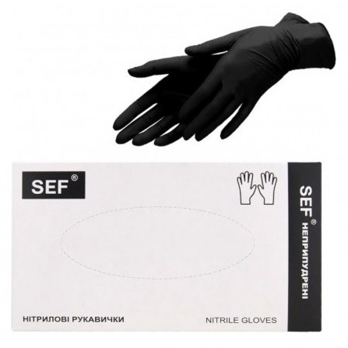 Рукавички нітрилові чорний без пудри нестерильні SEF розмір S (щільність 3.8 ...