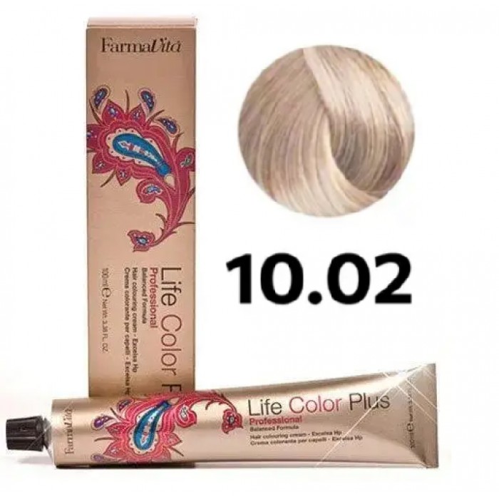 Стійка крем-фарба Farmavita Life Color Plus 10.02 Платиновий блондин жемчyжни...