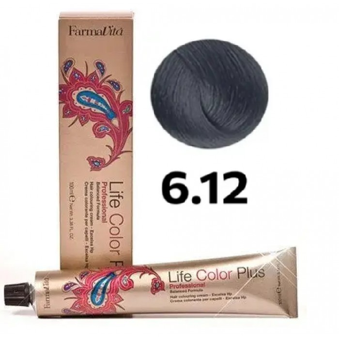 Стійка крем-фарба Farmavita Life Color Plus 6.12 Темний блондин попелясто-пер...