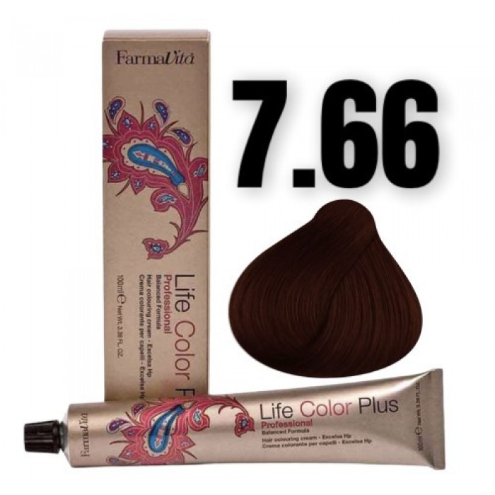Стійка крем-фарба Farmavita Life Color Plus 7.66 Блондин насичений червоний 1...