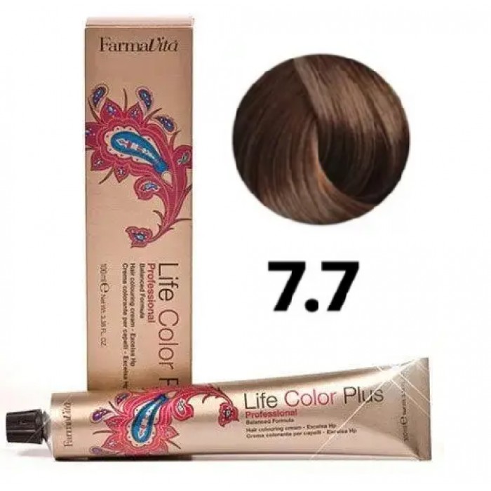 Стійка крем-фарба Farmavita Life Color Plus 7.7 Дуже світлий коричневий кашем...
