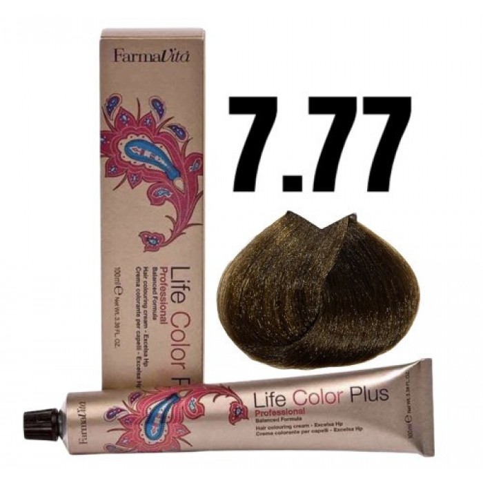 Стійка крем-фарба Farmavita Life Color Plus 7.77 Блондин світлий коричневий к...