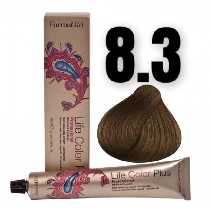 Стійка крем-фарба Farmavita Life Color Plus 8.3 Світлий блондин золотистий 10...