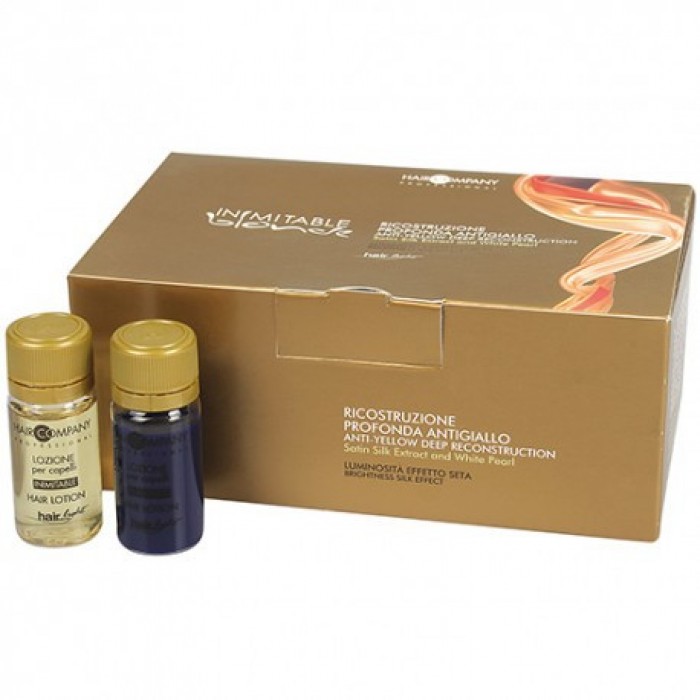 Глибоке відновлення з антижовтим ефектом Anti — yellow Inimitable Blonde — це чудовий догляд за освітленим волоссям. Які, завдяки вмісту фіолетово-синього пігменту в складі, нейтралізують небажану жовтизну. Перед застосуванням для поліпшення ефекту використовуйте шампунь проти жовтизни. Результат: м'яке, сяйне та розгладжене волосся Спосіб застосування: Змішати пензликом обидва компоненти в ємності, до отримання однорідної кремоподібної консистенції. Рівномірно нанести суміш на волосся, попередньо вимити антижовтим шампунем. Час дії 5-7 хв. Для сильно пошкодженого волосся рекомендується використовувати джерело тепла. Змити.
