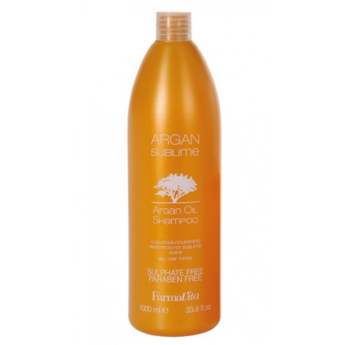 Farmavita Argan Sublime Shampoo — це шампунь з аргановою олією, що має ніжний і екзотичний аромат, який був спеціально створений для створення спокусливого, шовковистого та здорового волосся. У його складі немає алергенів, алкоголю, силіконів і сульфатів. Він пропонує якісне очищення для волосся і шкіри голови та може бути використаний для волосся всіх типів.