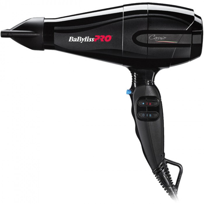 Фен Babyliss Caruso обладнаний сучасною ергономічною ручкою, яка спроєктована спеціально для зниження м'язової напруги перукарів у процесі роботи. Фен має 6 рівнів регулювання нагрівання та швидкості повітряного потоку. Такі гнучкі налаштування температури та швидкості дають змогу вибрати режим, що ідеально підходить конкретній укладці. Також у фені є кнопка миттєвого охолодження для роботи холодним повітрям.