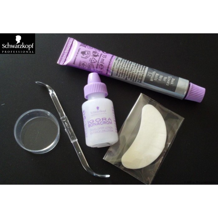 Спосіб застосування: змішати фарбу з окислювачем. Під повіки покладіть спеціальні захисні смужки, так щоб нижні вії лежали на папері. За допомогою спеціальної палички нанесіть фарбу на вії і брови. Почекайте 10-15 хвилин і змийте фарбу з вій і брів теплою водою.