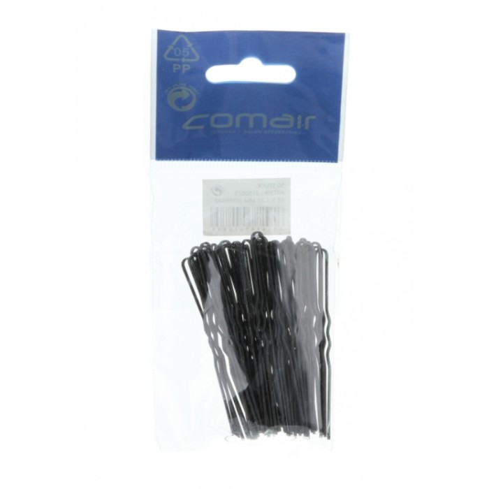 Щоб надійний інструмент завжди був під рукою, радимо придбати товсті чорні шпильки ТМ Comair (65 мм). Вони відмінно підійдуть для моделювання зачісок будь-якої складності з волосся будь-якої довжини. Будучи міцними, ці шпильки не «бояться» впливу різних хімічних речовин, які зазвичай використовують у перукарських салонах. Вони гнучкі та міцні. Для посилення фіксації на шпильках відсутнє полірування і є частина хвилястої поверхні, завдяки якій вони не зісковзнуть. Темний колір сприяють тому, що вони непомітні на темному волоссі.