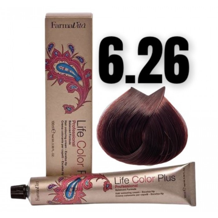 Стійка крем-фарба Farmavita Life Color Plus 6.26 Темний блондин червоний ірис...