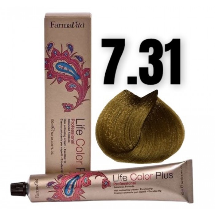 Стійка крем-фарба Farmavita Life Color Plus 7.31 Блондин золoтиcто-попелястий...