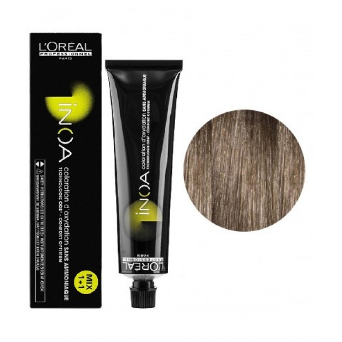 L'Oreal Inoa - фарба абсолютно не містить аміак. Унікальна формула дає змогу досягти досконалого кольору, максимального комфорту шкіри голови та дбайливого догляду за волоссям. INOA вирізняється надзвичайною м'якістю впливу на структуру волосся. Результати тестів показали: нова послуга фарбування INOA підтримує ліпідний запас натурального волосся, а також запас найважливіших амінокислот. Кремоподібна текстура INOA схожа на текстуру дорогого крему з догляду.
