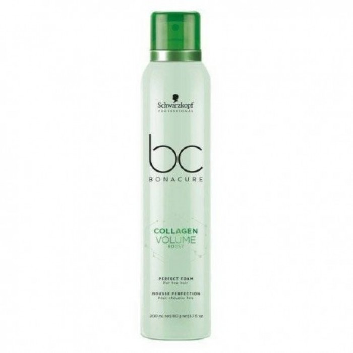 Мус для прикореневого об'єму волосся простий і зручний у використанні. З ним локони будуть більш пишними, легкими, шовковистим і блискучим. У складі Schwarzkopf Professional BC Collagen Volume Boost Perfect Foam немає силіконів. Комплекс амінокислот покращує стан пасм, сприяючи їх зміцненню і відновленню. Завдяки унікальній формулі мус не липкий, легко розподіляється по всій довжині, швидко висихає при укладанні.